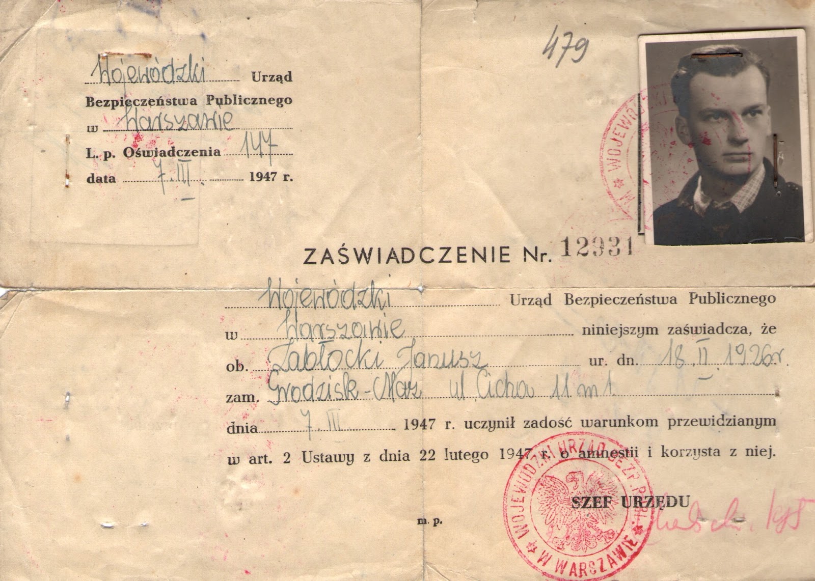 - ↑ Zaświadczenie nr 12331 – WUBP w Warszawie. [dostęp 2019-12-19].